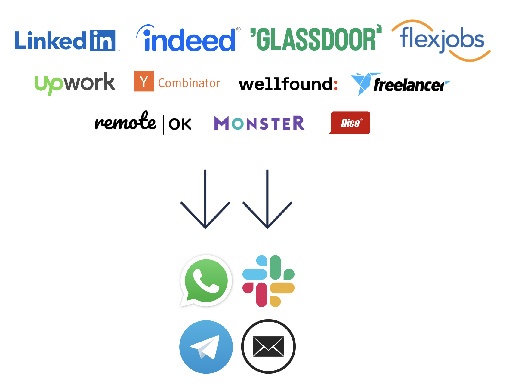 Pick how you’d like to get job notifications: WhatsApp, Slack, Telegram, Email